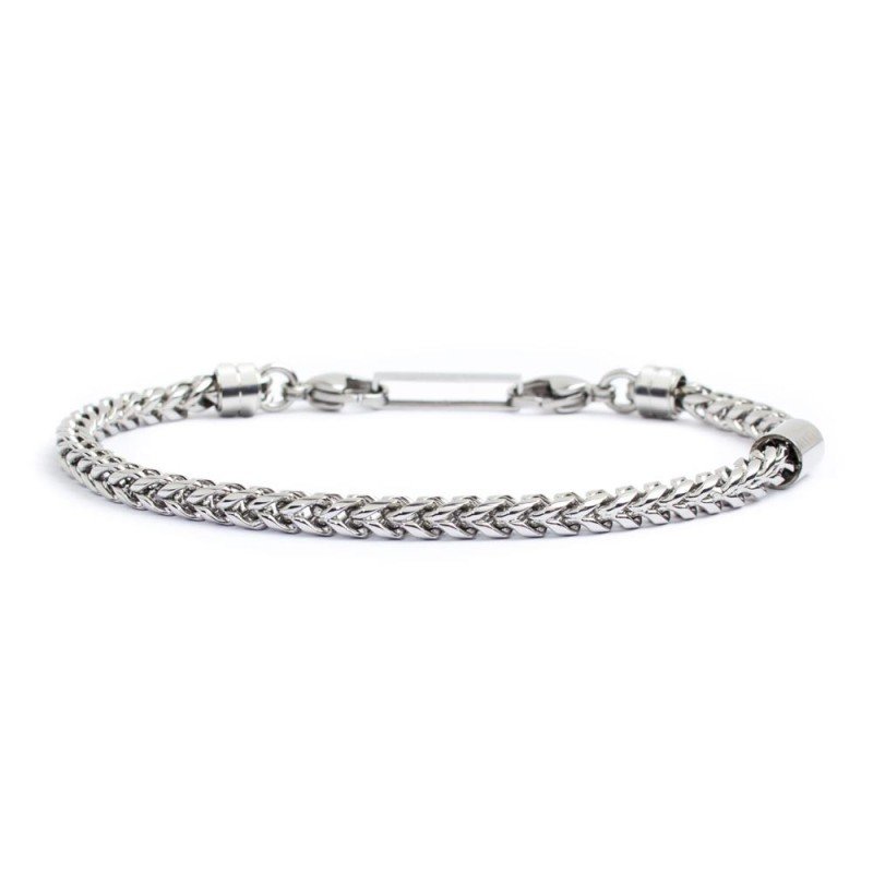 Bracciale in acciaio con catena fishbone 4 mm e barilotto all’estremità texturizzato Lunghezza 19/21 cm regolabile Collezione : Man Trendy 28 Materiali : Acciaio