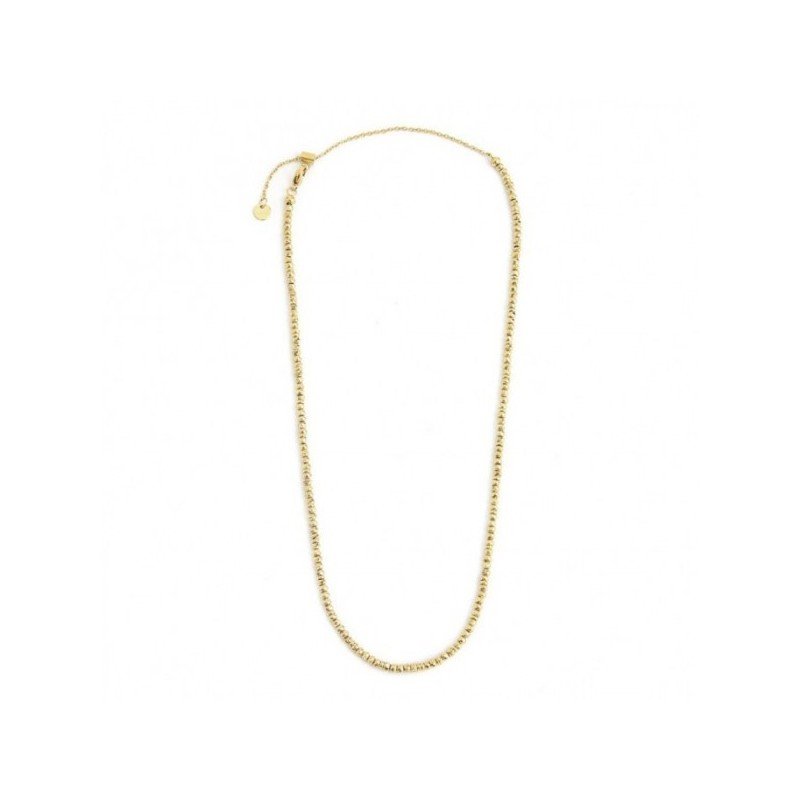 Collana in ematite cromata. Lunghezza totale 50 cm, regolabile tramite cursore da 50 cm a 40 cm. Marlù logo tag all’estremità.