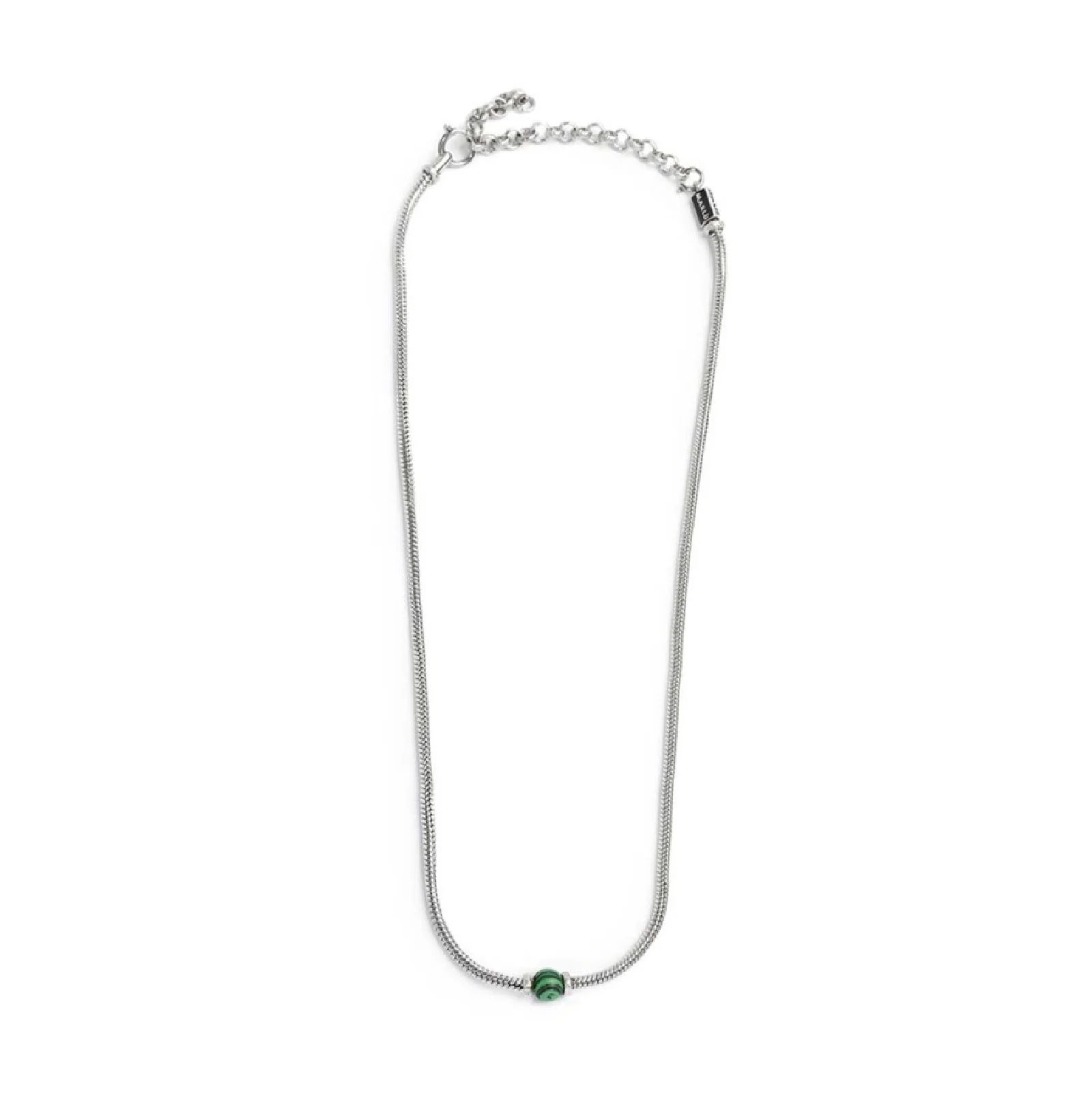 Collana girocollo della collezione Marlù Namastè da uomo. Colore: argento e marrone. Il gioiello è in acciaio inossidabile 316L caratterizzato da catena snake e pietra occhio di tigre al centro tonda. Lunghezza regolabile da 50 cm a 60 cm. Chiusura a moschettone.