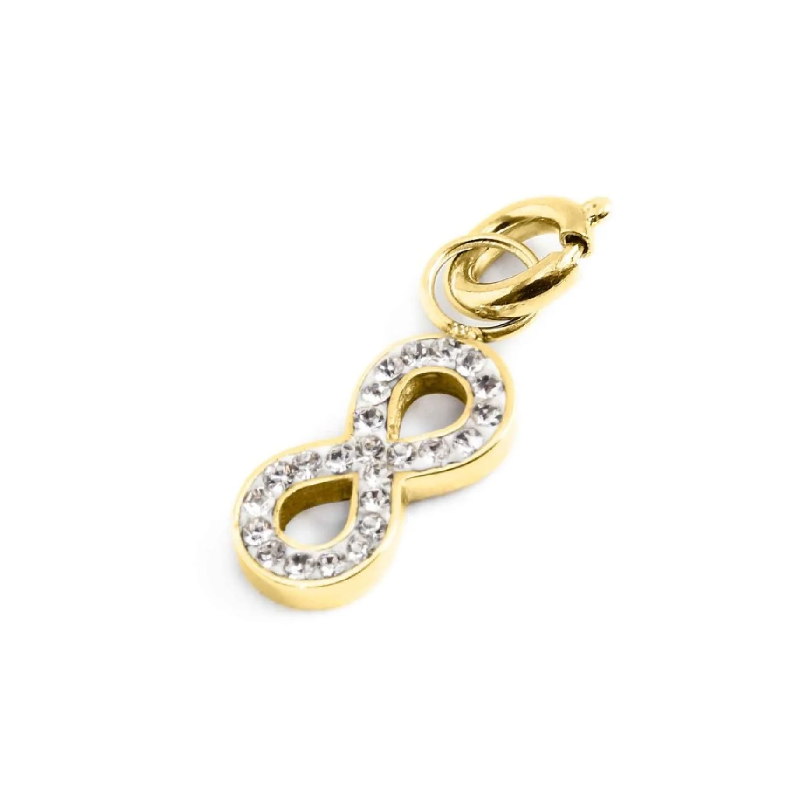 CHARM ORO PVD STRASS BIANCHI INFINITO TMT 20. Sul retro è presente il logo MARLU’ laserato.