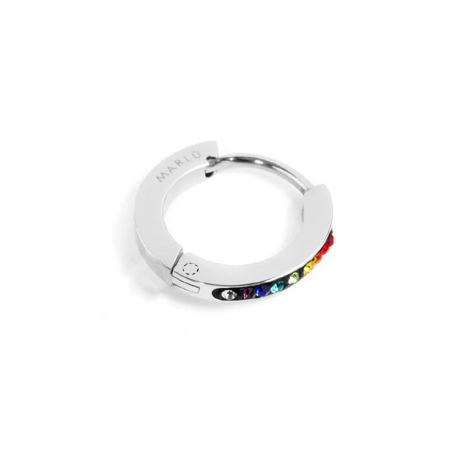 Mono orecchino a cerchio della collezione Marlù Basi da donna. Colore: argento e multicolor. Il mono orecchino è in acciaio inossidabile 316Lrealizzato a forma di cerchio con diametro esterno di 13 mm e cristalli colorati. Chiusura a scattino.